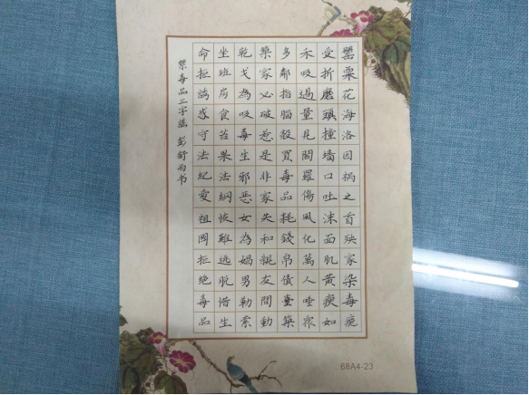 开展一次书法比赛。为了进一步加深同学们对毒品知识的了解,学院组织了一次以“珍爱生命,远离毒品”为主题的书法比赛,同学们积极参加,共收到参赛作品共50余幅,共评选出一等奖2名,二等奖5名,三等奖10名。比赛以传统书法为载体,广泛宣传禁毒知识,让同学们在创作和欣赏艺术作品的同时,提高防毒、拒毒的意识。