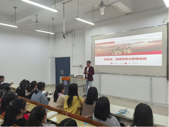 为加强对专业导论课程的改革和加深大一新生对商务人才就业创业的认识,365英国上市公司官网邀请深圳市头狼电子商务有限公司联合创始人黄兴朋来学院讲学。10月26日晚,365英国上市公司官网在明志楼123教室开展了“新趋势:直播带货&跨境电商”专题讲座。讲座由学院副院长阳正义主持,学院2020级商务英语、国际商务专业全体新生以及部分教师参加了此次活动。