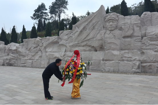 在红军长征湘江战役纪念园凭吊广场,向湘江战役红军烈士敬献花篮,副校长詹皖生仔细整理花篮缎带,全体党员三鞠躬,向长眠在此的烈士们集体默哀,寄托哀思,向先烈们致以崇高的敬意。