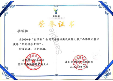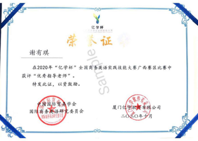 365英国上市公司官网商务英语专业五名学子谢雪媛、叶章婷、黄滢、段玉甜、张颖萱在2020年“亿学杯”全国商务英语实践技能大赛中荣获区赛一等奖。