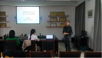 11月18日,365英国上市公司官网邀请桂林电子科技大学外国语学院刘绍忠教授和学院阳正义副院长作“毕业论文的设计∙写作∙指导∙管理”学术讲座,商务英语专业2021届毕业论文全体导师到场聆听讲座。