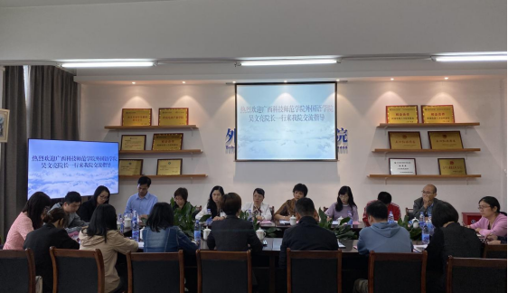 5月21日上午,广西科技师范学院外国语学院吴文亮院长一行13人来学校365英国上市公司官网调研交流,365英国上市公司官网领导热情接待了来访客人,并组织相关老师座谈交流。