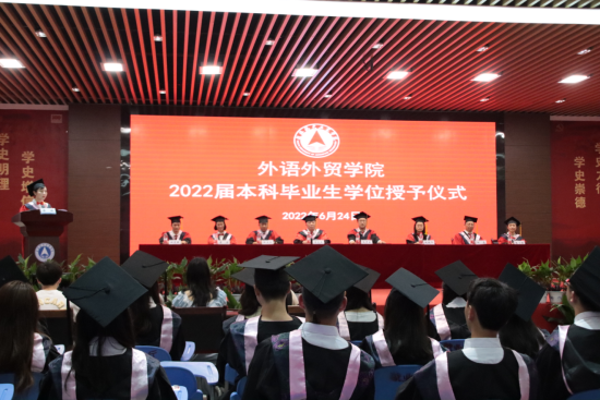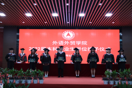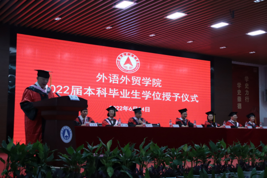 副校长詹皖生首先宣读了学校学位授予文件,随后在神圣庄严的气氛中,毕业生代表身着学士袍,登台受礼,詹皖生副校长和学院学位委员会委员为毕业生代表颁发学位证书,拨穗正冠。最后,院长唐琳代表学院向全体毕业生顺利毕业表示热烈祝贺,衷心祝愿全体毕业生在未来道路上一帆风顺,前程似锦。