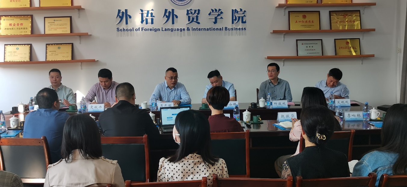 最后,吴校长肯定了学院在改革发展、服务地方建设中取得的成绩,表示学校将一如既往的支持学院的建设和发展,为学院和教师创造更好的条件,提供优质平台,并提出了几点希望:一是加强教风学风建设,提高教学质量;二是加大人才队伍建设,科学规划和合理引进人才,充分发挥新引进博士资源优势,打造优秀的教学科研团队;三要突出办学特色,充分利用学院外语特色优势,结合学校为航空航天服务和面向东盟办学特色,形成和发展学科专业特色;四是做好专业发展中长期规划,为学校进一步改革发展贡献力量。