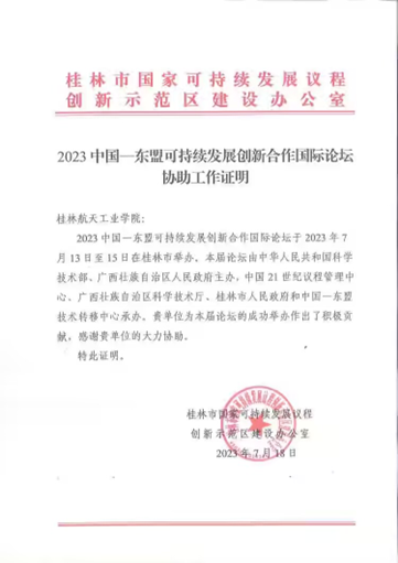 2023中国-东盟可持续发展创新合作国际论坛于2023年7月13日至15日在桂林市举办。本届论坛由中华人民共和国科学技术部、广西壮族自治区人民政府主办,中国21世纪议程管理中心、广西壮族自治区科学技术厅、桂林市人民政府和中国-东盟技术转移中心承办。论坛邀请东盟国家科技部代表、国内知名专家参会。
