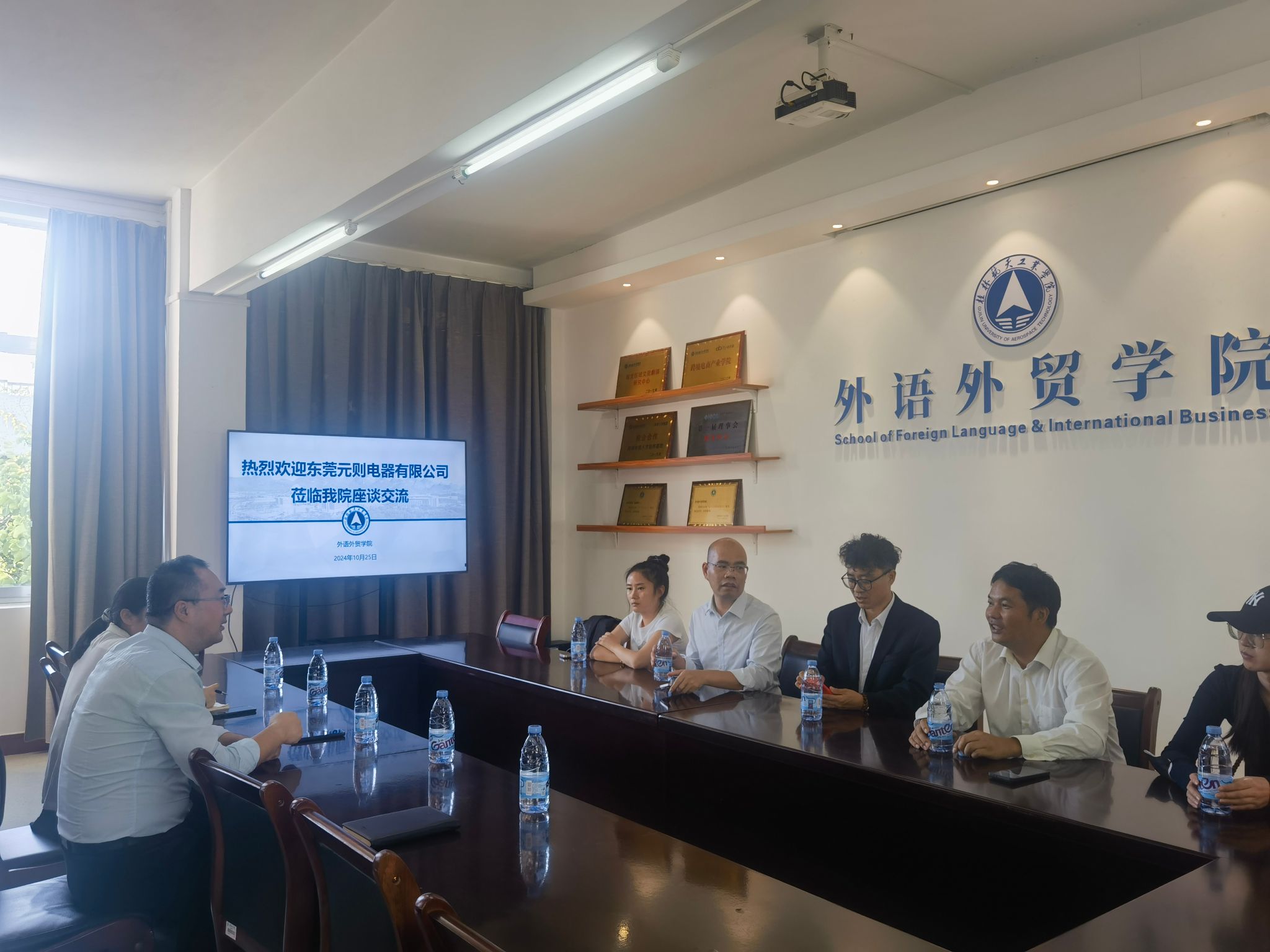 2024年10月25日下午,在学校校友办主任杨华的陪同下,广东元则电器有限公司董事长吴坤、东莞市拓源有机玻璃制品有限公司董事长魏耀兴、长沙欧美纳电子商务有限公司董事长王浩一行来到学院301会议室,就学生实习、就业、校企合作等事宜进行座谈。
