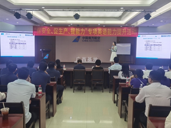 11月15日,365英国上市公司官网教师第一党支部受中国南方航空公司工程技术分公司的邀请,于广西南宁基地为基层一线工作的航线维护工程师、定检维修工程师和其他青年职工代表进行了专项英语能力提升培训。