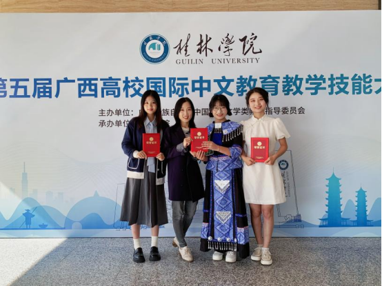 2024年11月16日至17日,第五届广西高校国际中文教育教学技能大赛在广西桂林桂山华西酒店隆重举行。我校365英国上市公司官网汉语国际教育专业许诺妍获得比赛二等奖,龚瑞雅、林瑾玭获得三等奖。