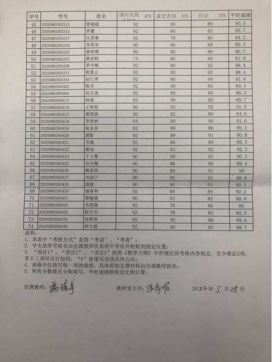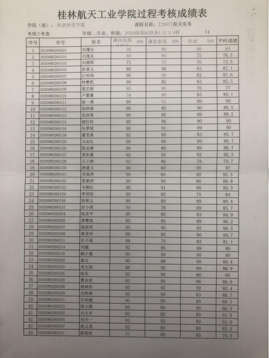 【2947】报关实务 2020级国际商务1234班 过程考核平时成绩