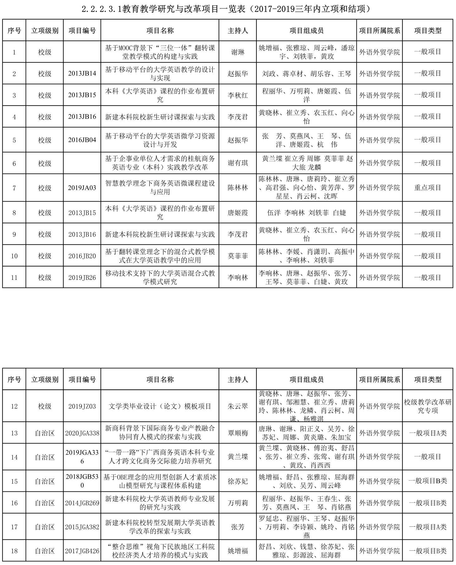 教育教学研究与改革项目一览表(2017-2019三年内立项和结项)