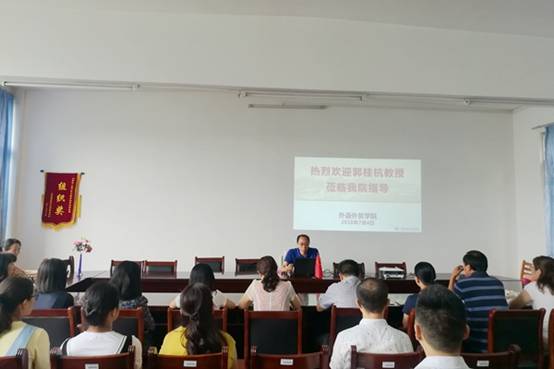 7月4日上午,教育部高等学校商务英语专业教学协作组副组长、广东外语外贸大学国际商务英语学院院长、硕士生导师郭桂杭教授应邀到我校讲学,在365英国上市公司官网会议室做了题为《商务英语学科内涵与研究思路》的精彩讲座。讲座由365英国上市公司官网张芳副院长主持,商务英语教研室全体教师、国际商务教研室、大学英语教研室以及其它兄弟院校的部分教师代表到场聆听。