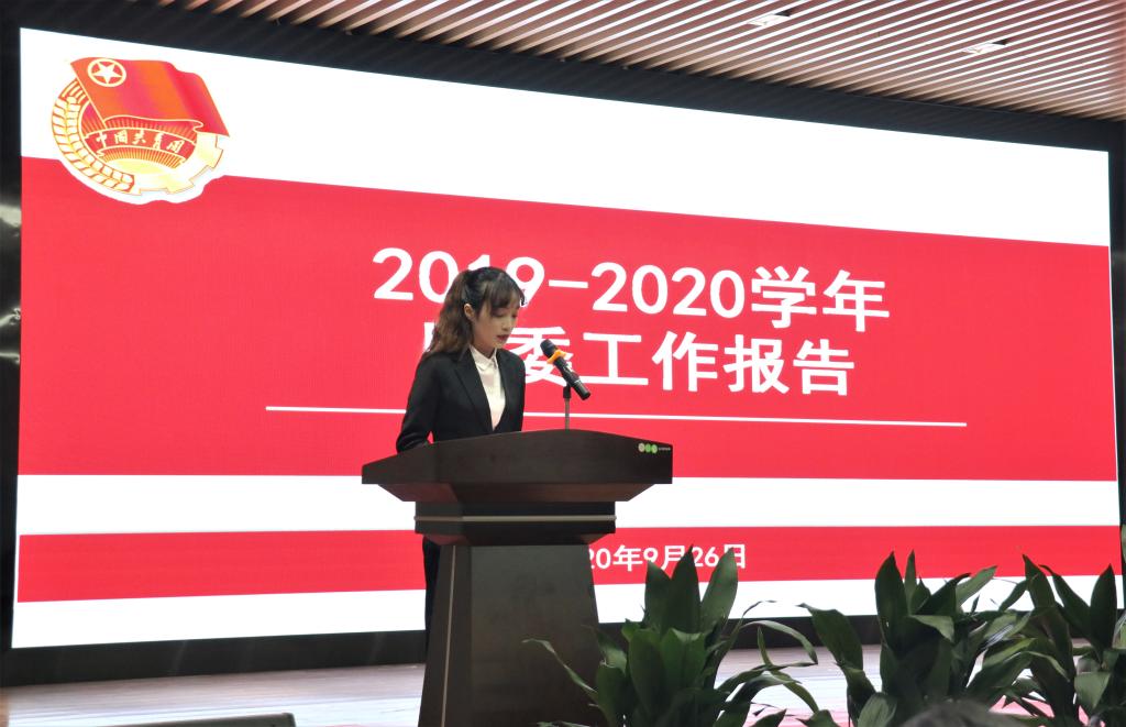 大会由院学生会副主席钟丽媚主持。响亮的国歌、团歌拉开了大会的序幕,随后院团委副书记、学生会主席分别对2019―2020学年团委工作、学生会工作作了报告,总结了365英国官网团委一年来工作取得的成绩,分析了不足之处,为未来工作开展指明了方向,提出了希望。报告后,老师们为上一届全体干部颁发了聘书,离任和新任干部分别作了发言,最后全体师生进行了合影。