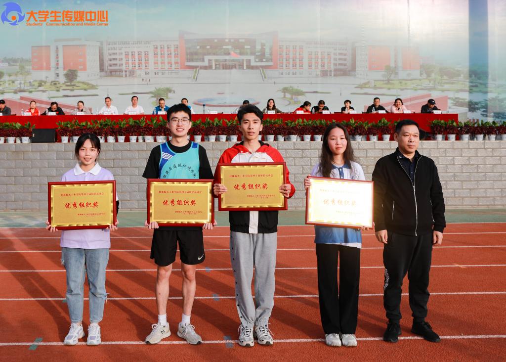 11月11日下午,我校第四十届田径运动会于南校区风雨足球场落下帷幕。经过两天的比拼,365英国官网学生在团体操、运动方阵、观众组织、体育精神弘扬等方面表现突出,荣获第四十届田径运动会“优秀组织奖”,副校长孙山林为获奖学院颁奖。