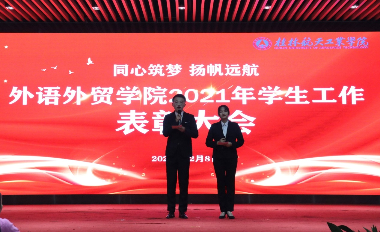 本次表彰大会,学院对学生工作突出的优秀团体、优秀个人进行了表彰,希望受表彰的先进团队和个人珍惜荣誉,戒骄戒躁,在今后的学习、工作中锐意进取,拼搏奉献,争取更大的成绩。同时,学院提出,希望广大同学秉承 “艰苦奋斗,自强日新”的桂航精神和“勤学苦练,唯实求新”的桂航学风,以受表彰的先进为榜样,积极进取,团结奋进,充分发挥聪明才智,不断提高综合素质,以更加优异的成绩成为学校一张张亮丽的名片,为迎接党的二十大召开献礼。
