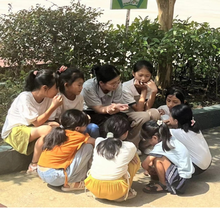 图4. 团队成员在教室外给孩子们分享英语学习的方法