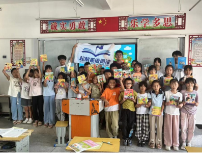 每一本绘本都承载着知识的光芒,每一张插图都跃动着想象的翅膀。孩子们的笑脸在故事中绽放,与这些绘本共同编织成一幅幅温馨的画面。活动结束,我们把绘本送到每个同学手上。小小的英语绘本,不仅传递着知识,更播种着希望和梦想。希望他们能像我们一样走进大学扬帆起航。随着快门按下,我们定格了这份珍贵的瞬间——孩子们与英语绘本的缘分,会推动他们努力向上。让爱与知识同行,让英语朗读的声音传遍大山每一个角落。